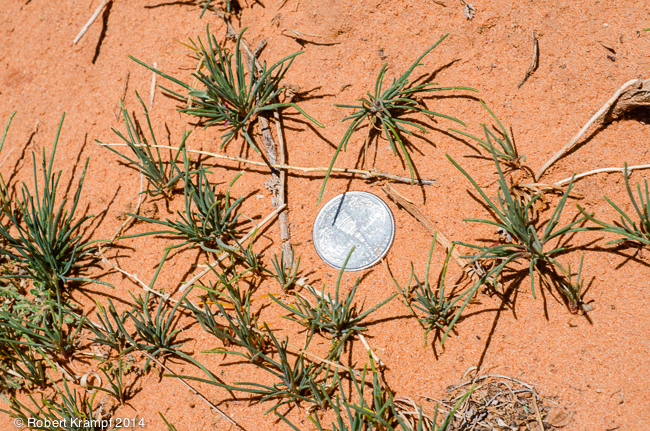 It is only when the plant matures and dies that it is easily recognizable as a Tumbleweed. This is an invasive species, originally from parts of Russia. It has adapted very well to the Western U.S., and is considered an undesirable weed. When they reach the "tumbleweed" stage, they are covered with sharp spines.