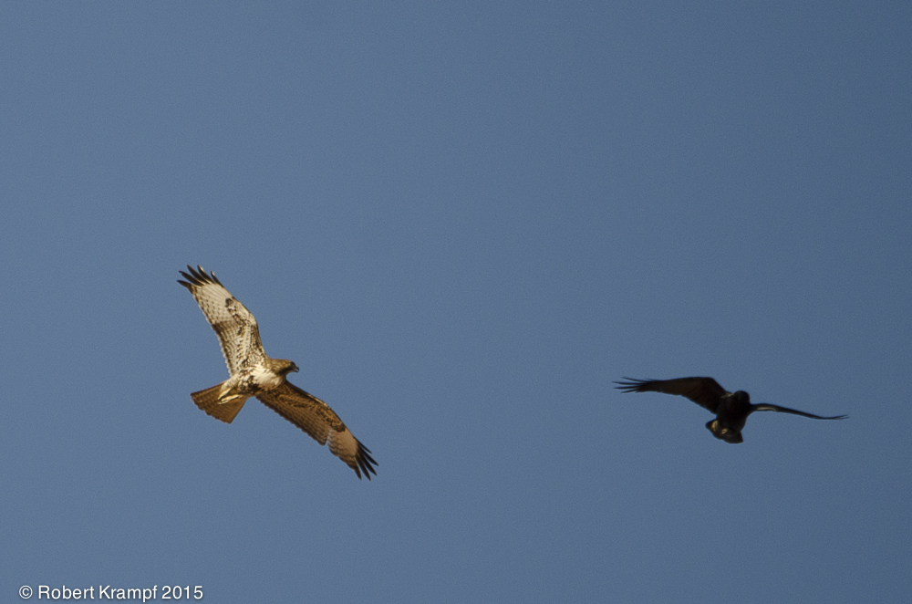 Then the hawk began to chase the raven. This was unusual, at least from my experience. Usually the hawk seems to be trying to ignore the raven instead of actively chasing it.