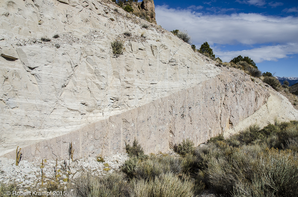 Along the way, I enjoyed the scenery, wildlife, and geology. At this road cut on Highway 20, between I-15 and Highway 89, I had to stop for some photos. The darker layer is the Buckskin Breccia, a layer of igneous rock from the early Miocene (about 20 million years ago). It is made up of chunks of igneous rock and volcanic ash.