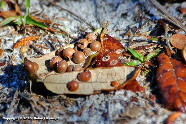 I took this photog at Little Manatee River State Park. Why do these oak leaves have round lumps on them?