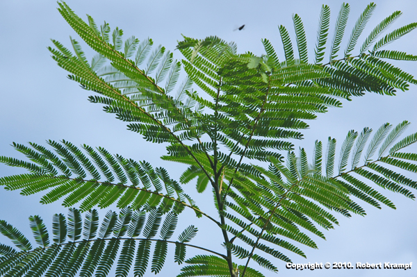 These are the double compound leaves from a Mimosa tree. There are ten of them, counting the partial leaf at the bottom of the photo. Each of the "stems" coming off of the branch is a petiole, the base of a leaf.