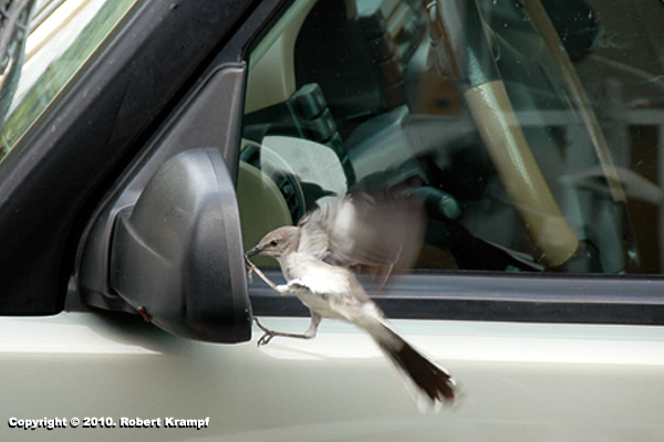 This Mockingbird has spent days fighting his reflection in our car mirror, thinking that it is another bird. Besides humans, which other animals can recognize their own reflection in a mirror?