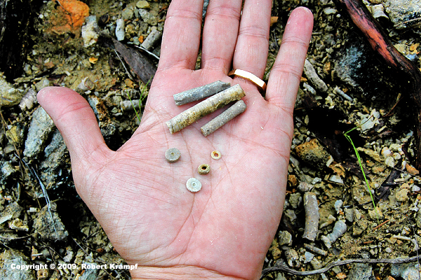 These fossils came from the top of a cliff, near Lobelville, Tennessee. If you look in the background, you can see other crinoids, as well as coral fossils.