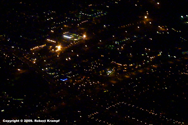 When seen from a plane at night, why are some street lights yellow, while others are blue-white?