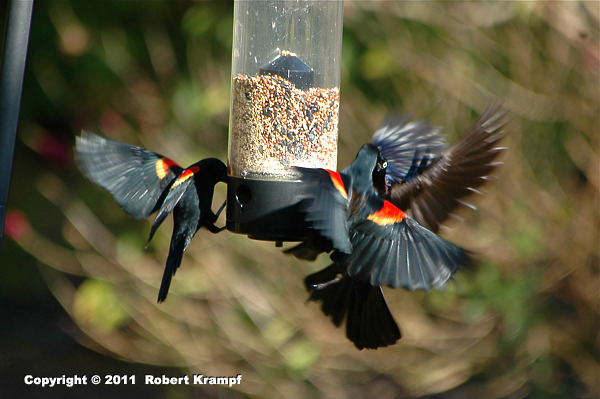 To the birds, a feeder is similar to a plant that is full of fruit or seeds. When the food runs out, they move on to other sources. Feeders will not keep them from migrating, and actually help them fatten up for the journey. They should be kept clean, with fresh seed. If the food molds, it can be toxic to them.