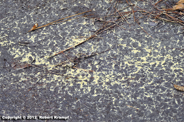 Plants that are pollinated by insects do not have to produce large quantities of pollen, but pine trees are pollinated by the wind. The tree has to produce enough pollen so that some of it will be blown onto the cones of another tree, which means that a LOT of it winds up on the ground instead.