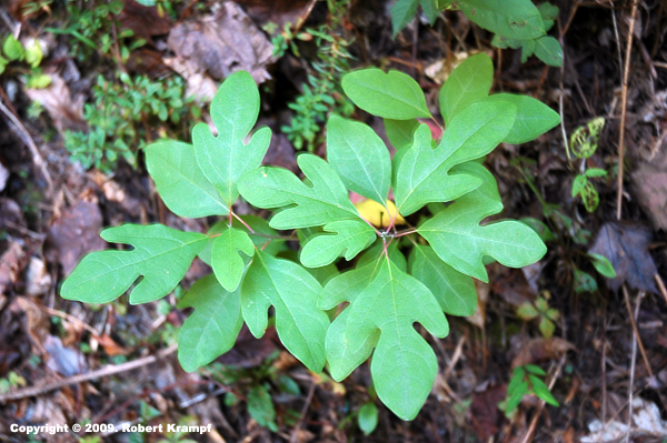 This is a Sassafras Tree. It is well known for many culinary uses. It is a vital ingredient if you are going to make real file gumbo, which is why it is such a popular plant in Louisiana. It was used for making tea and for flavoring root beer, but was banned by the FDA in 1960, because it was thought to cause liver problems and possibly cancer. In 1994, after more research, the ban on Sassafras Tea was lifted.